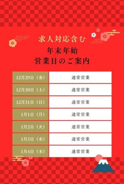 年末年始営業等について